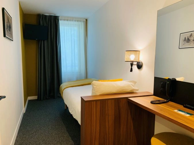 Séjournez dans nos petites chambres individuelles pour un séjour économique au cœur de Lyon. Cette chambre comprend une salle de bain privative avec douche et toilettes. Elle dispose d’un lit une place de 90*190cm